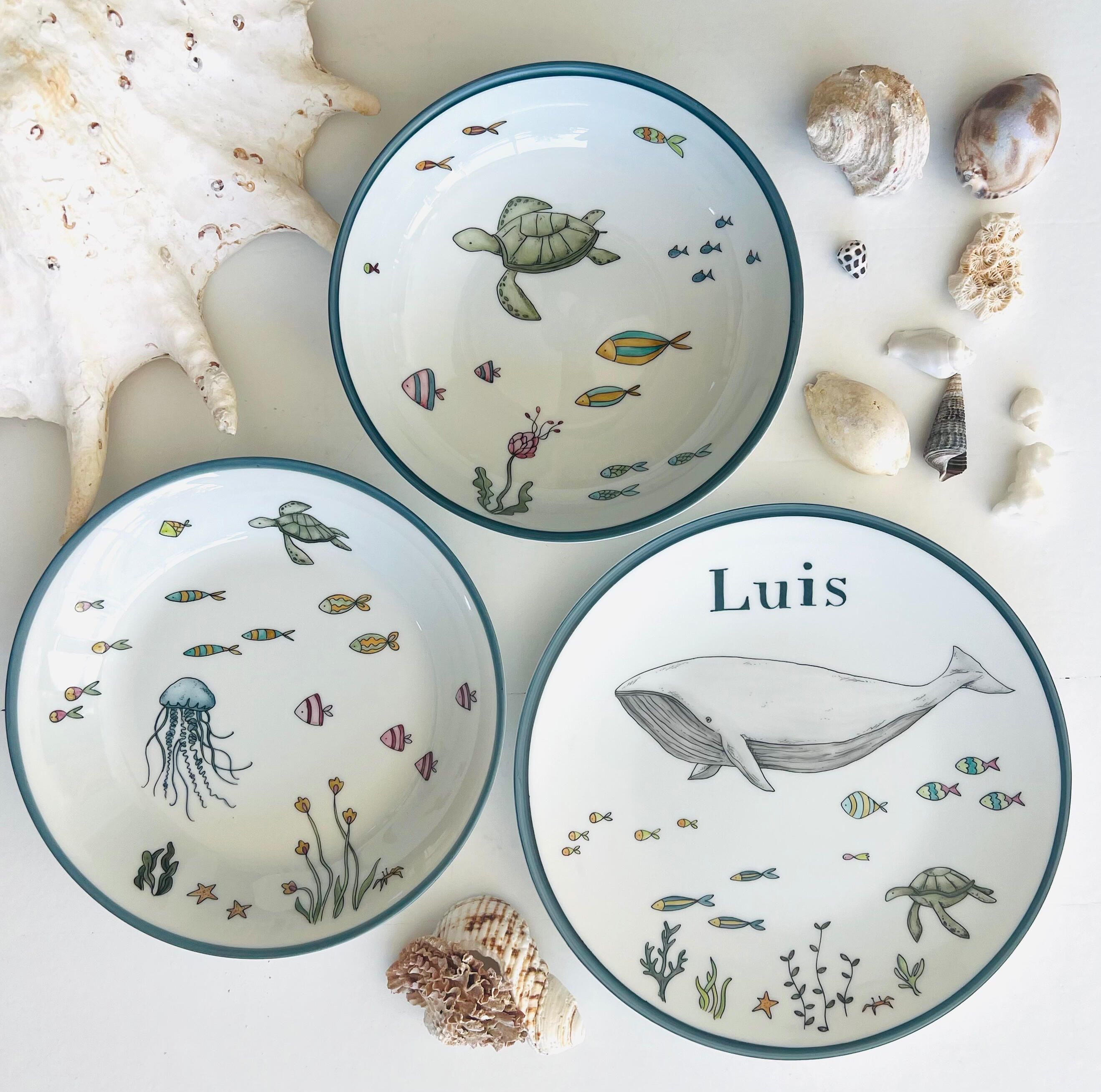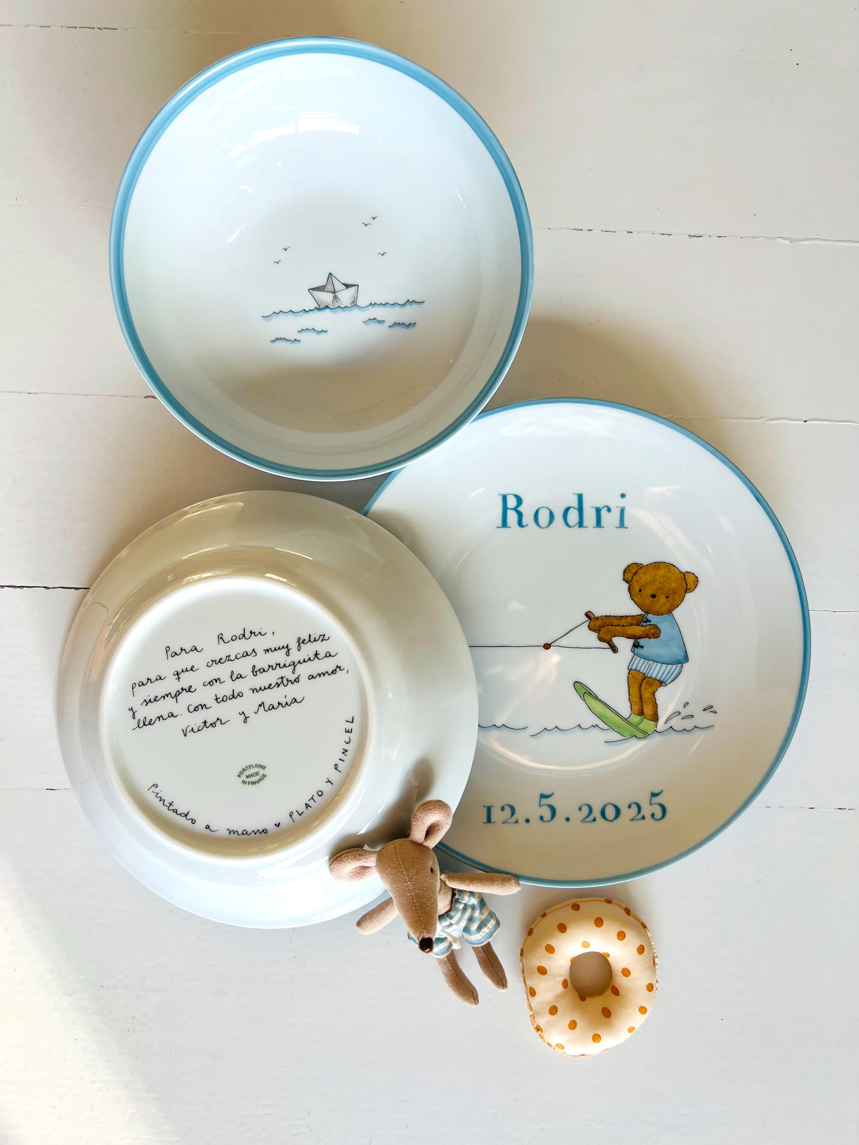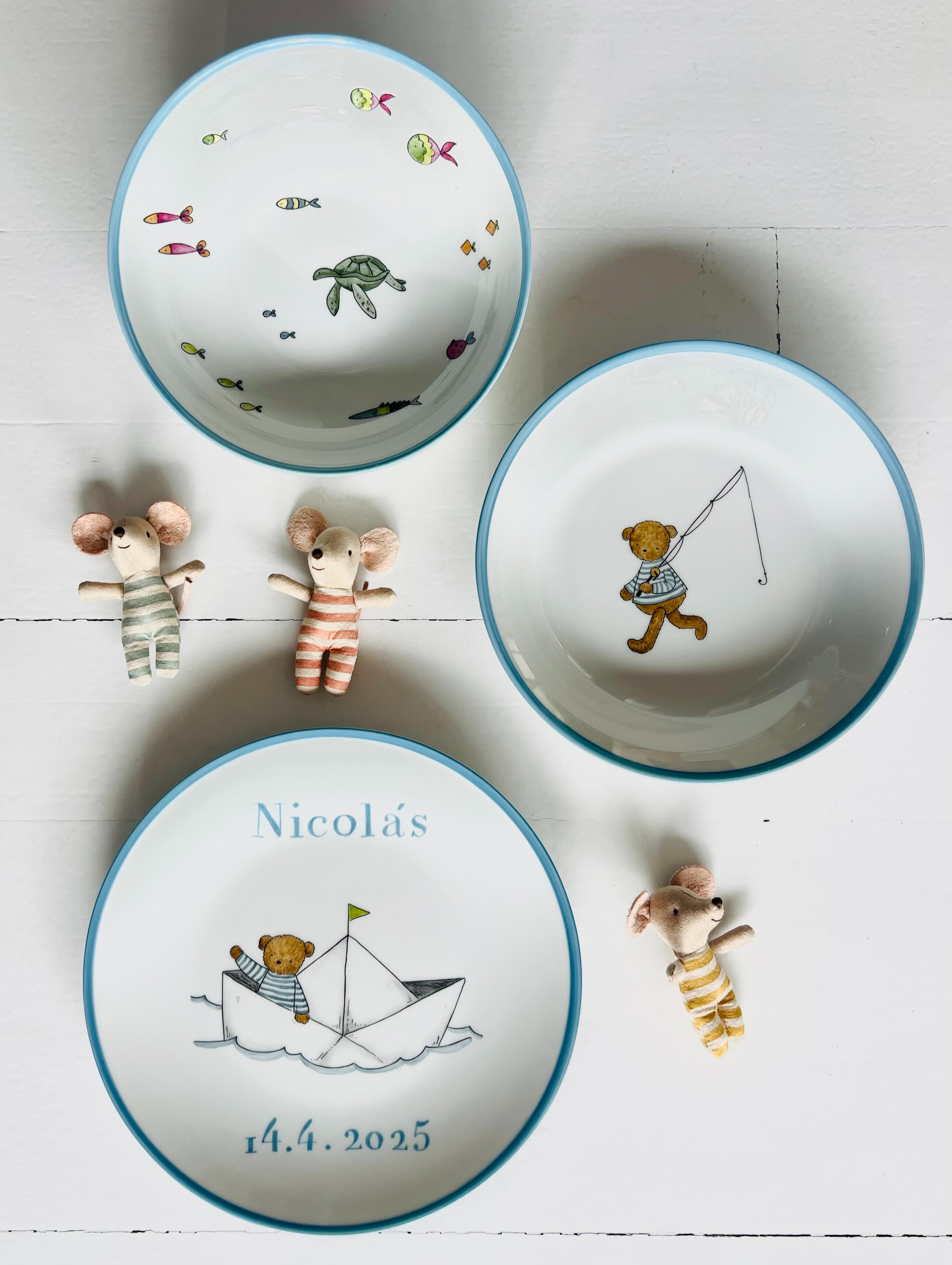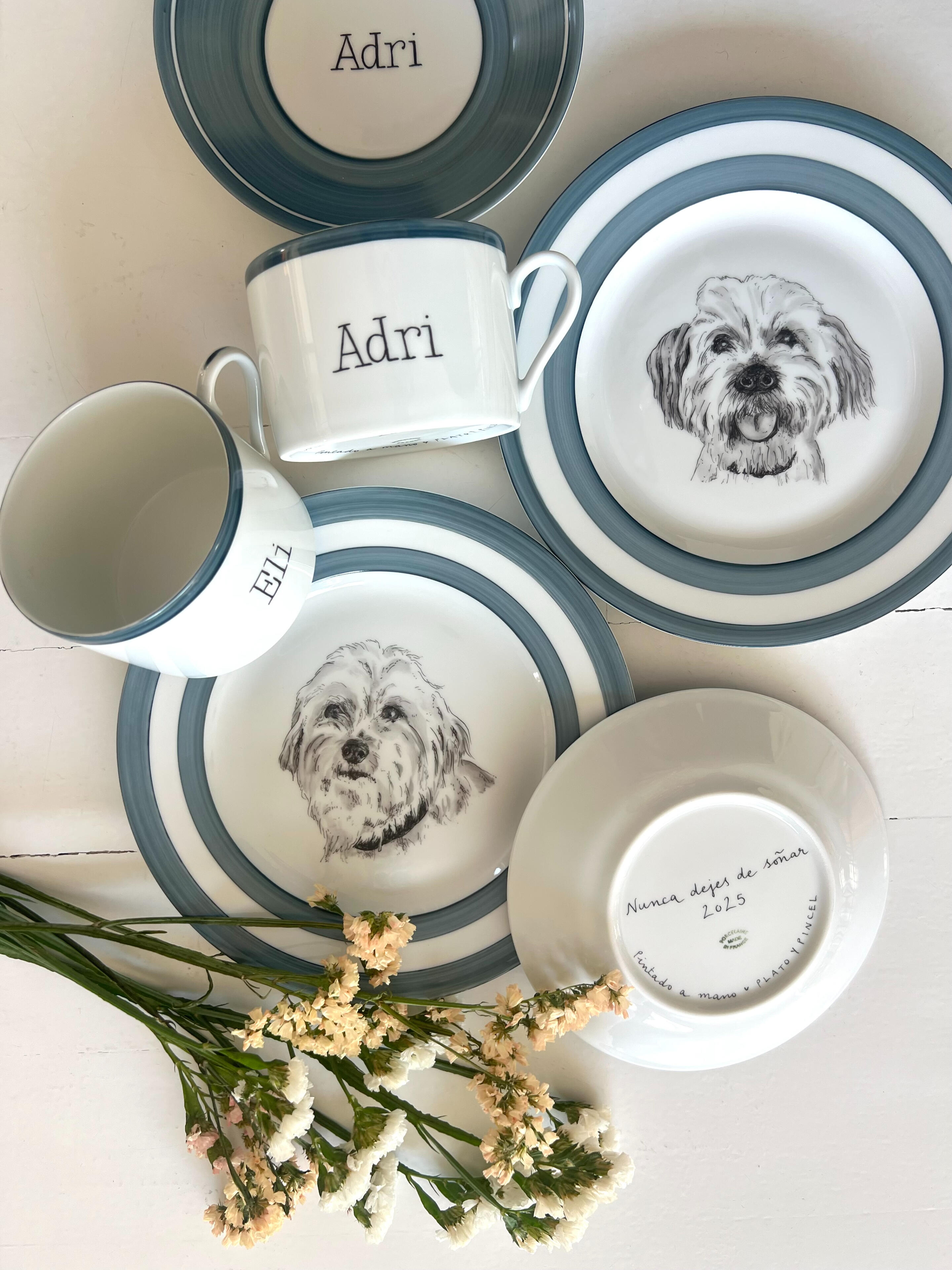 A partir de la idea que tienes, trabajamos juntos para crear un diseño que encaje con su visión; una temática, un estilo, unos colores concretos. A veces ajustamos proporciones, añadimos algún detalle significativo o propongo alternativas que pueden hacer que la pieza cobre más personalidad, siempre respetando la esencia inicial.Una vez definido el diseño, lo llevo a la porcelana. Trazo las líneas principales directamente sobre la pieza con un lápiz cerámico que permite corregir, mover o refinar cualquier detalle, marcando contornos, equilibrando espacios y asegurándome de que cada elemento quedará en el lugar adecuado antes de empezar a trabajar con el color. Es un paso tranquilo, casi meditativo, donde el dibujo comienza a tomar forma y la pieza empieza a contar su historia.
