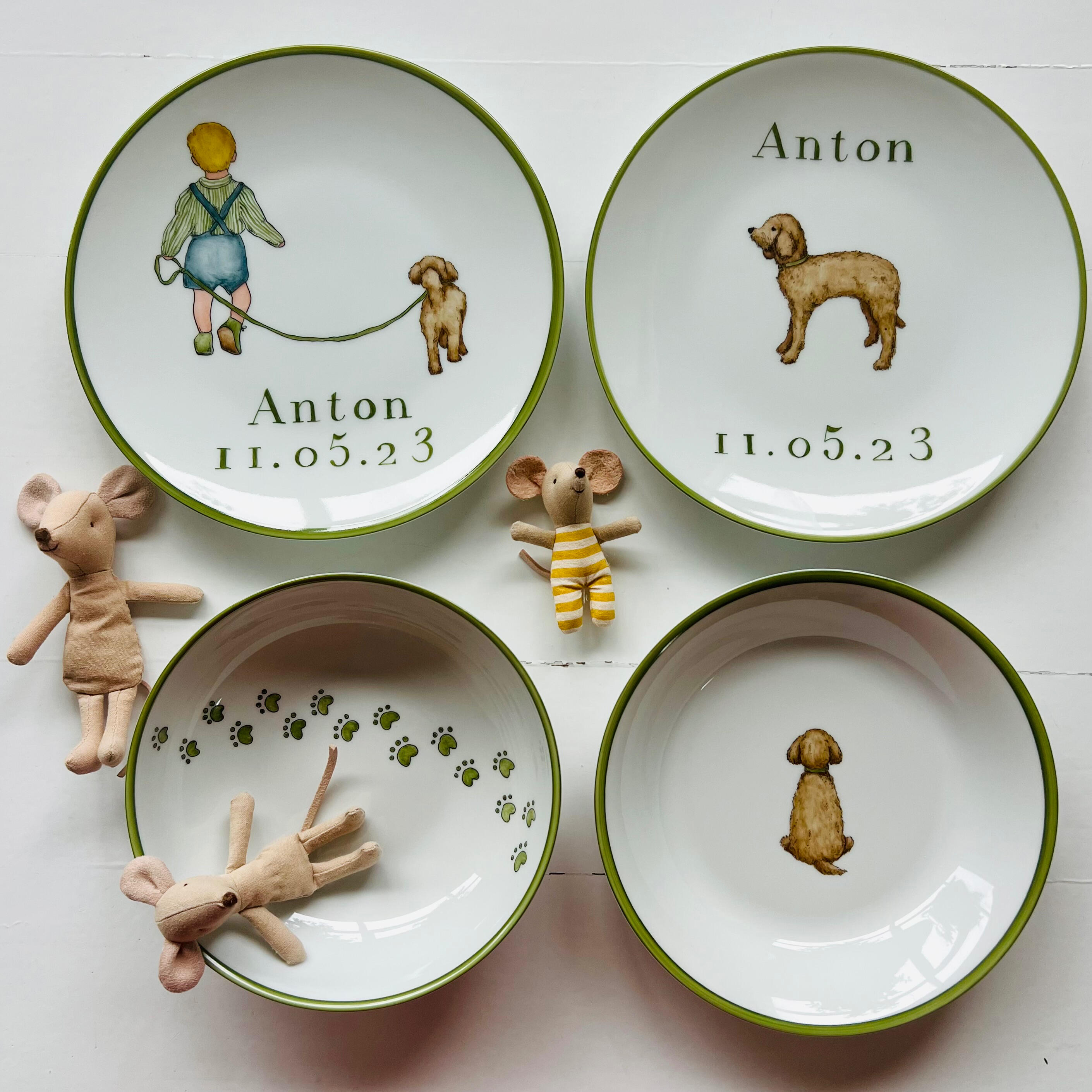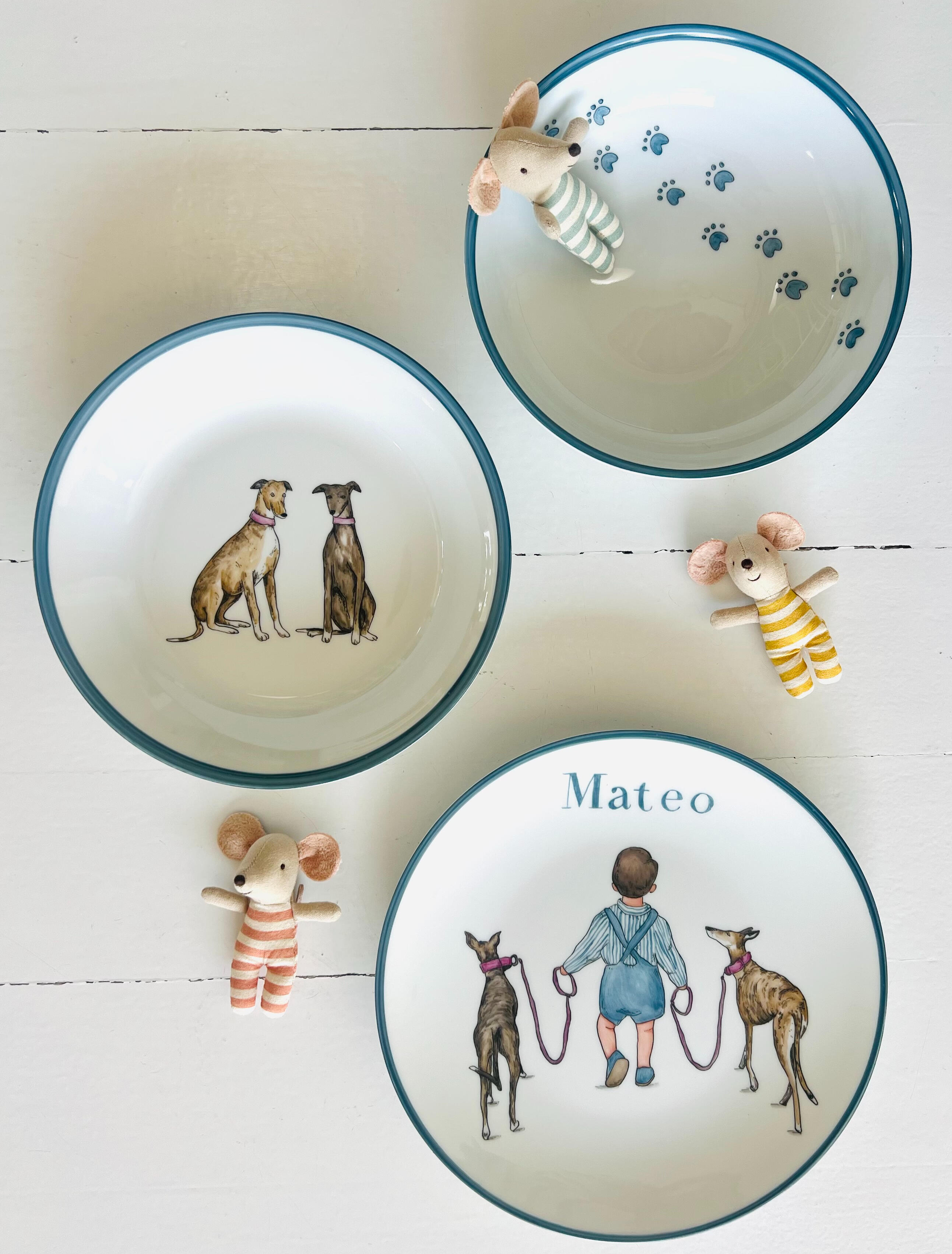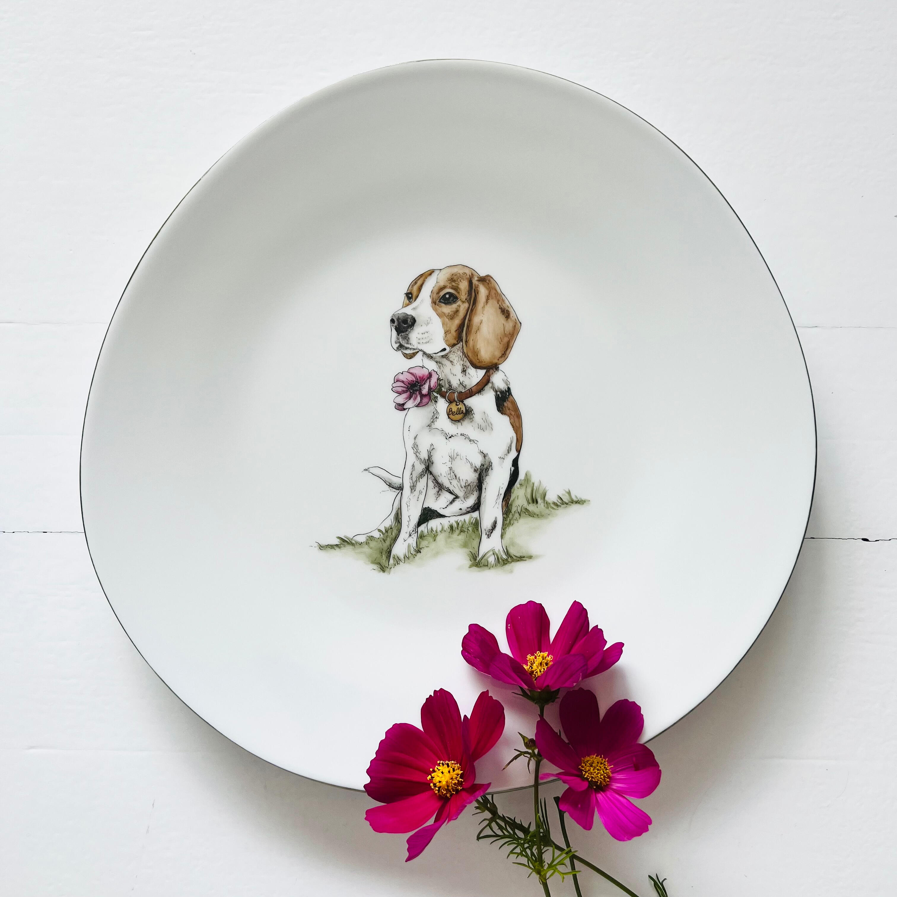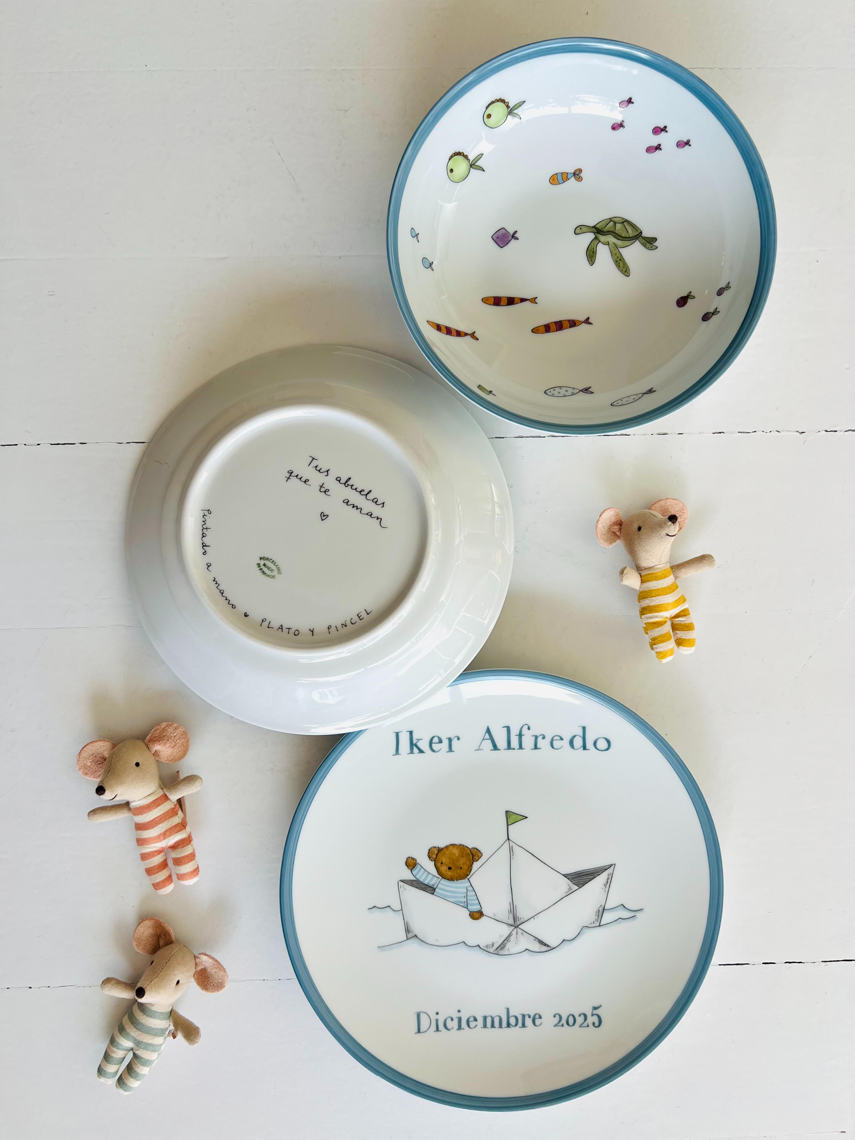A partir de la idea que tienes, trabajamos juntos para crear un diseño que encaje con su visión; una temática, un estilo, unos colores concretos. A veces ajustamos proporciones, añadimos algún detalle significativo o propongo alternativas que pueden hacer que la pieza cobre más personalidad, siempre respetando la esencia inicial.Una vez definido el diseño, lo llevo a la porcelana. Trazo las líneas principales directamente sobre la pieza con un lápiz cerámico que permite corregir, mover o refinar cualquier detalle, marcando contornos, equilibrando espacios y asegurándome de que cada elemento quedará en el lugar adecuado antes de empezar a trabajar con el color. Es un paso tranquilo, casi meditativo, donde el dibujo comienza a tomar forma y la pieza empieza a contar su historia.